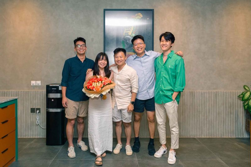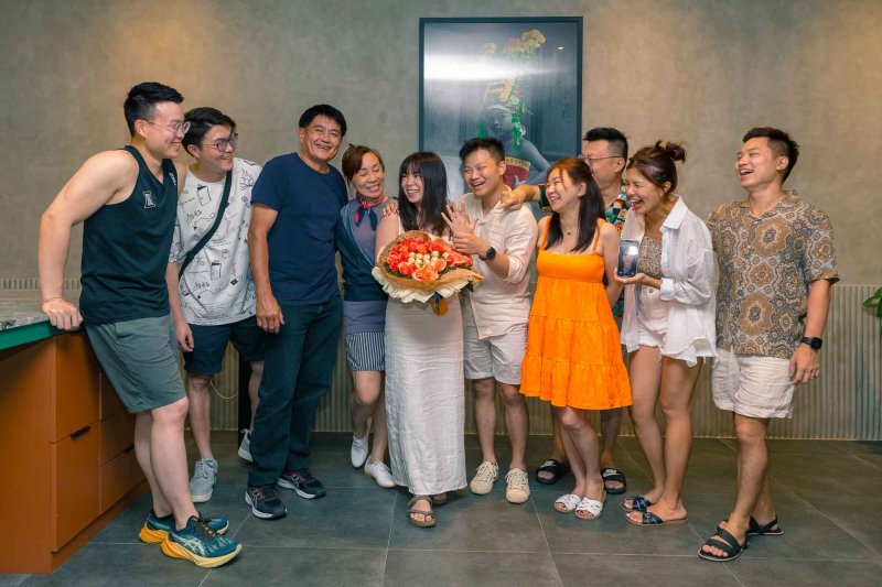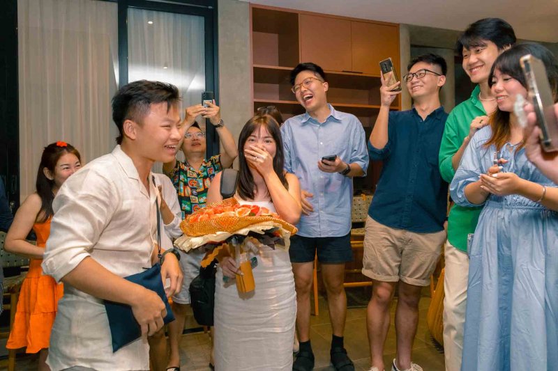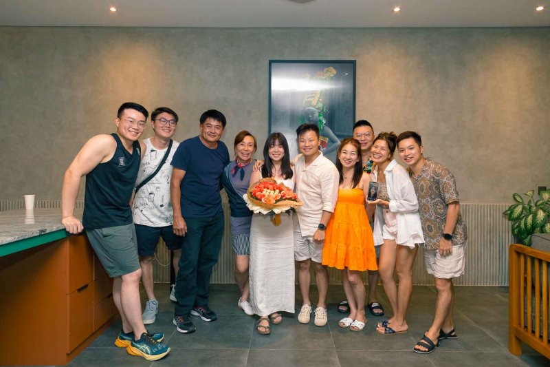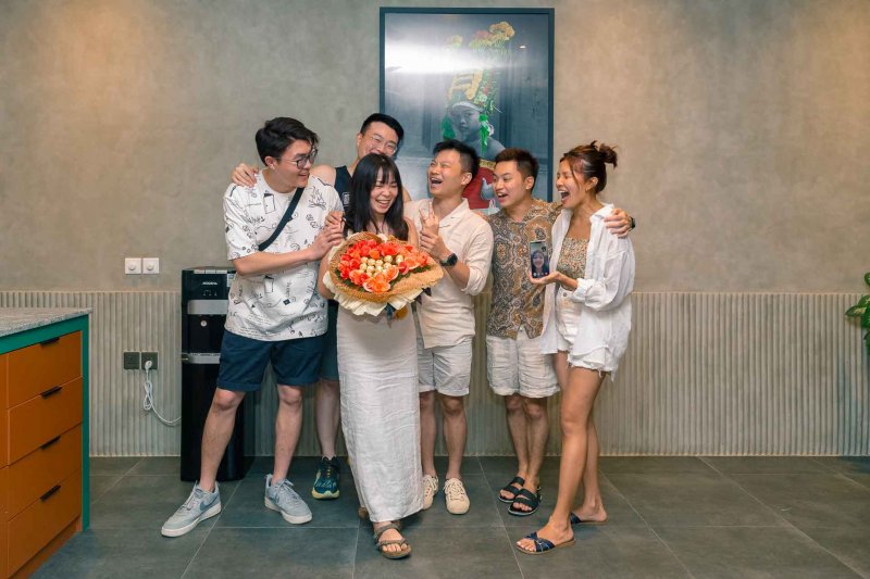 And after the successful surprise propose , he was coming to 2nd surprise which was Party at the villa wit all of families and friends from Singapore gathering on that moment to surprise Zils …
