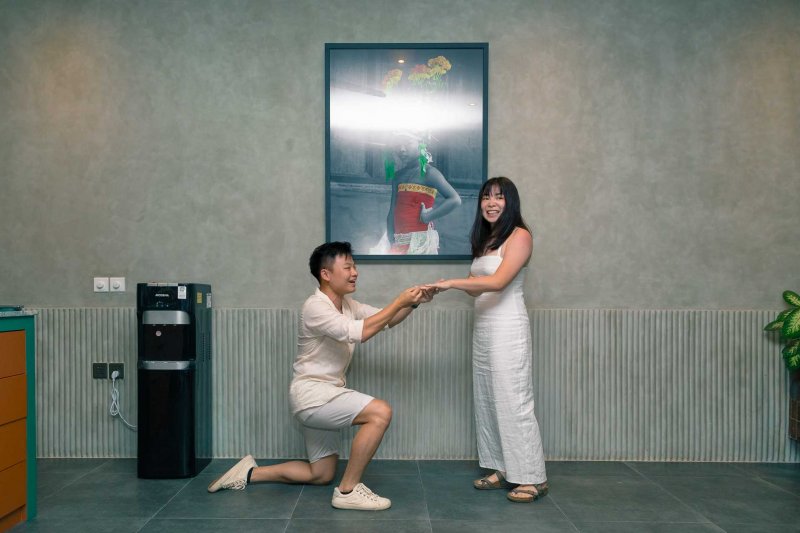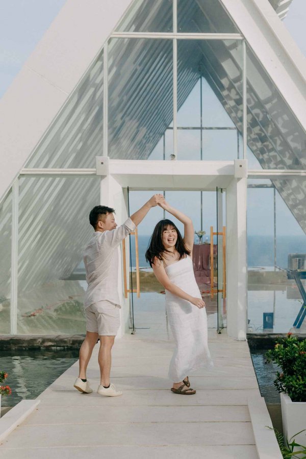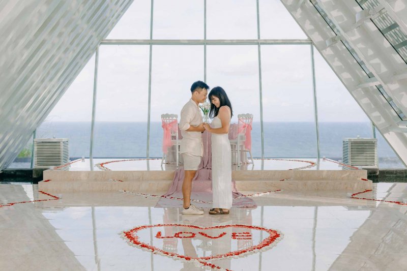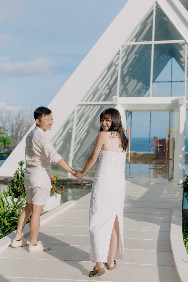 He arrange a surprise engagement to propose his fiancee , Zils , in a very amazing chapel located in Uluwatu on top of the hill with an amazing view of 2 ocean bonding together of Indian Ocean and Pacific Ocean . Obviously the propose went pretty smooth since , Zils also very surprised with what Keirwin did that day , It was a very cute reaction coming from Zils which make us as shooters , witness that moment also dip one or two drops of tears from our eyes . It was really unbelievable moment.